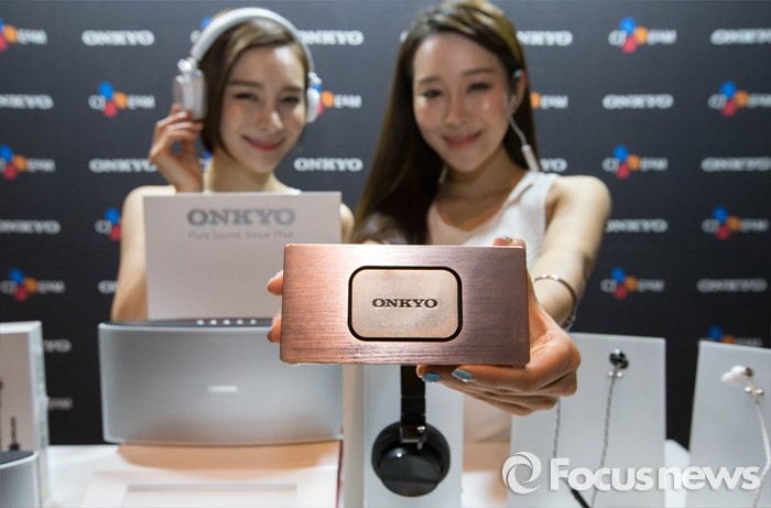 (서울=포커스뉴스) 14일 오전 서울 마포구 상암동 CJ E&M에서 열린 프리미엄 사운드 브랜드 '온쿄(Onkyo)' 기자간담회에서 모델들이 출시 제품을 선보이고 있다. 온쿄(Onkyo)는 CJ E&M 음악사업부문과 깁슨 이노베이션스가 손잡은 프리미엄 사운드 브랜드이며 프리미엄 스피커, 헤드폰, 이어폰 등 제품 15종을 선보일 예정이다.