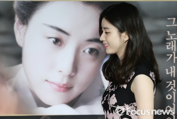 (서울=포커스뉴스) 14일 오전 서울 광진구 롯데시네마 건대입구점에서 열린 영화 '해어화' 제작보고회에 참석한 배우 한효주가 포토타임을 위해 이동하고 있다.