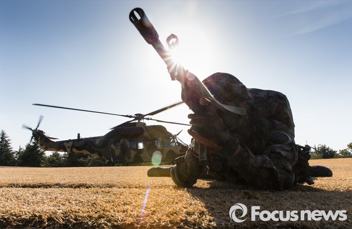 (대구=포커스뉴스) 10일 오후 제2작전사령부 예하부대에서 육군항공·특공부대 전개훈련에 참가한 201특공여단 장병들 국산 헬기 수리온(KUH-1)을 이용해 작전지역에 침투하고 있다.
