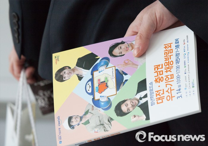 (대전=포커스뉴스) 14일 오전 대전시청에서 열린 청년희망로드쇼 대전·충남권 우수기업 채용박람회에 구직자가 구직정보를 살피고 있다.