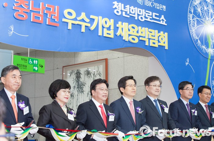 (대전=포커스뉴스) 황교안 국무총리가 14일 오전 대전시청에서 열린 청년희망로드쇼 대전·충남권 우수기업 채용박람회에 참석해 테이프커팅을 하고 있다.