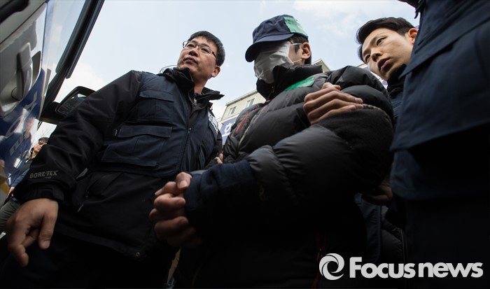 (평택=포커스뉴스) 학대와 무관심 속에 살해당한 뒤 야산에 암매장 된 신원영 군의 친부 신모 씨가 14일 오후 경기도 평택경찰서를 나서고 있다.