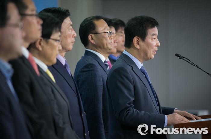 (서울=포커스뉴스) 20대 총선을 앞두고 공천 배제(컷오프)된 박대동 새누리당 의원이 14일 오후 서울 여의도 국회 정론관에서 시의원 및 당원들과 함께 공천 탈락 재심 요청 및 결과에 따른 무소속 출마 시사 등 입장 발표 기자회견을 하고 있다.