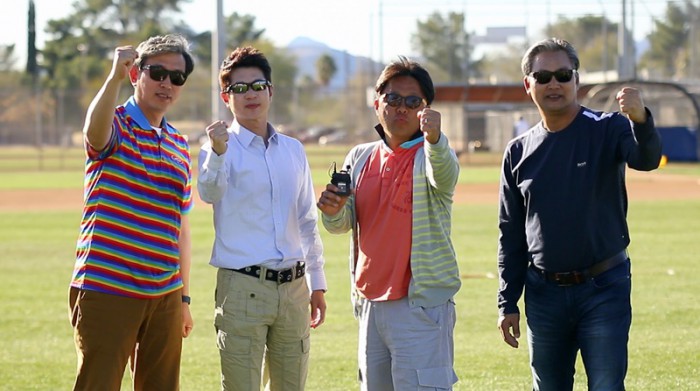 스카이스포츠는 14일 "지난 시즌에 이어 올해도 '2016 타이어뱅크 KBO리그' 전체일정 중 하루 1경기씩 생중계한다"고 밝혔다. 중계진은 지난해와 마찬가지로 임용수, 임경진 캐스터, 이효봉, 김진욱 해설위원으로 구성됐다.스포츠 전문채널 스카이스포츠가 올시즌도 프로야구를 생중계한다. 사진은 이효봉 해설위원, 임경진, 임용수 캐스터, 김진욱 해설위원(왼쪽부터) 등 스카이스포츠 프로야구 중계진. <사진제공=스카이스포츠>