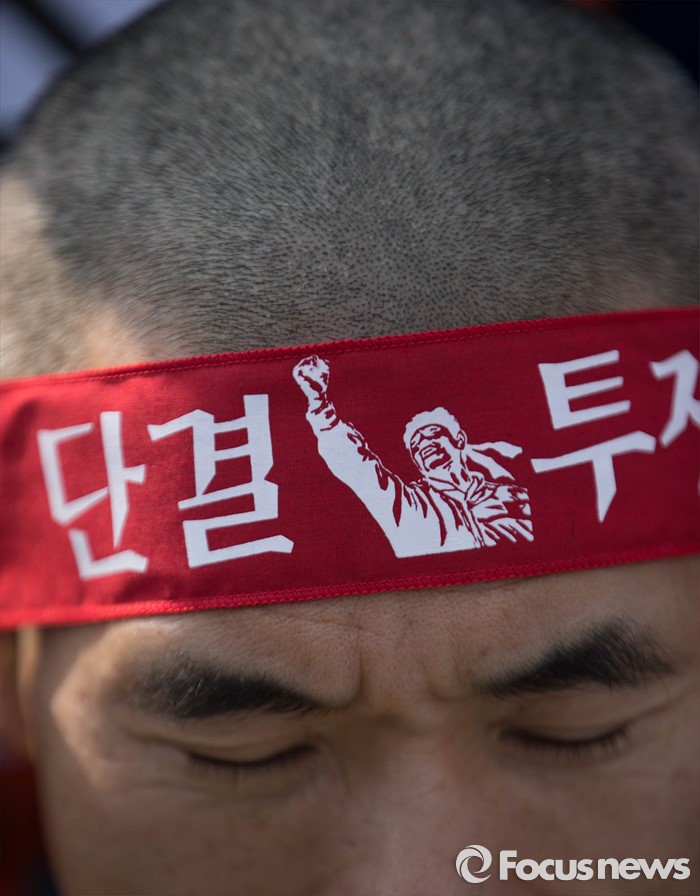 (서울=포커스뉴스) 14일 오후 서울 종로구 정부서울청사앞에서 전국교직원노동조합원 및 관계자들이 법외노조 판결에 대한 교육당국의 후속조치 철회를 촉구하며 삭발을 하고 있다.