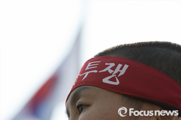 (서울=포커스뉴스) 14일 오후 서울 종로구 정부서울청사앞에서 전국교직원노동조합원 및 관계자들이 법외노조 판결에 대한 교육당국의 후속조치 철회를 촉구하고 있다.