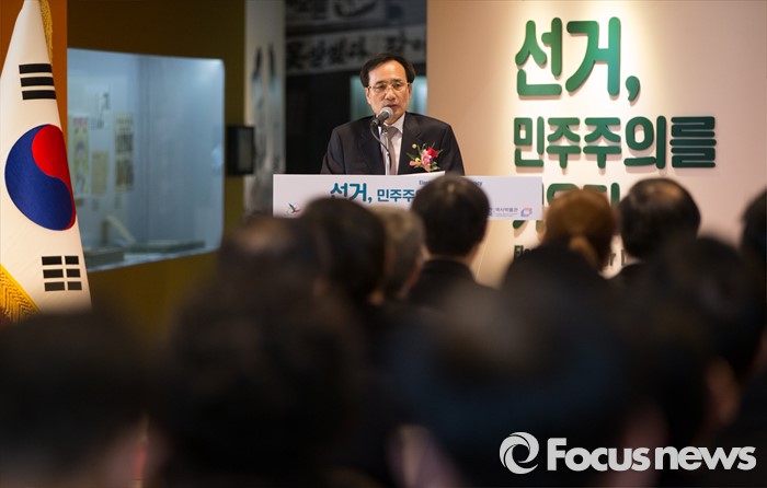 (서울=포커스뉴스) 문상부 중앙선거관리위원회 상임위원이 14일 오후 서울 종로구 대한민국역사박물관에서 열린 대한민국 선거의 역사 '선거, 민주주의를 키우다.' 특별전시회 개막식에 참석해 인사말을 하고 있다.