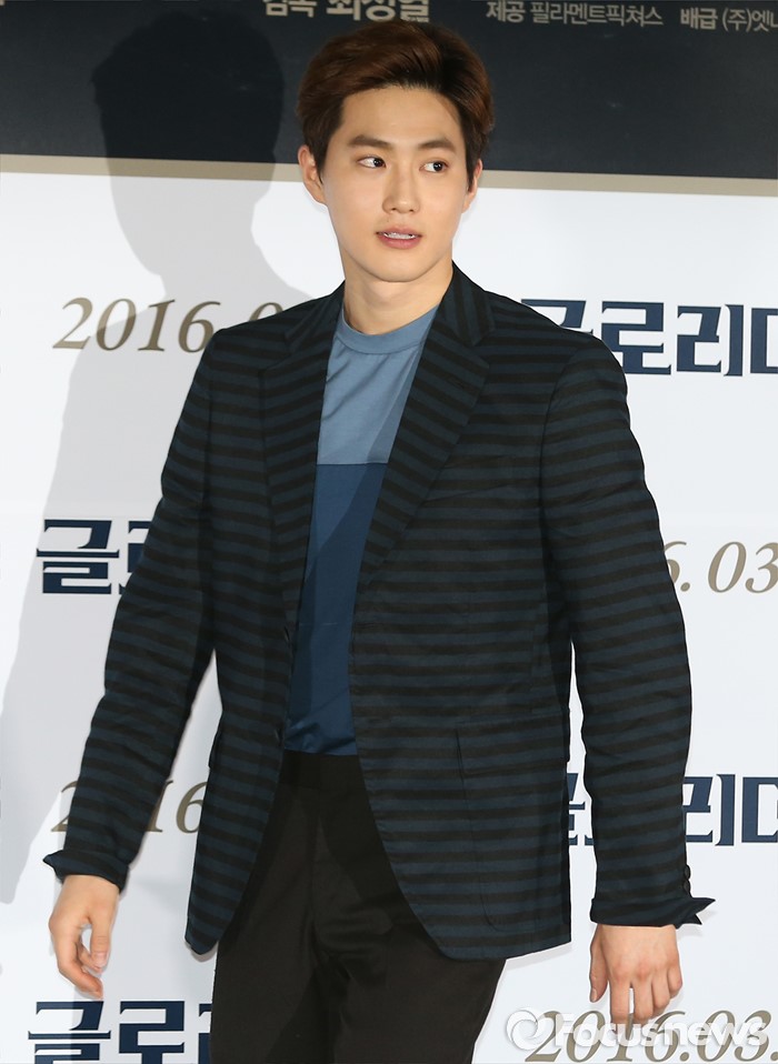 (서울=포커스뉴스) 14일 오후 서울 성동구 왕십리 CGV에서 열린 영화 '글로리데이' 언론시사회에 참석한 배우 김준면이 포토타임을 갖고 있다.
