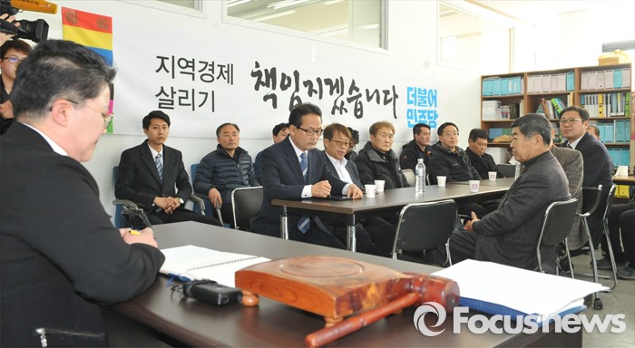 (세종=포커스뉴스) 이해찬 더불어민주당 의원이 14일 공천에서 탈락하면서 지지자들이 강력히 반발하고 있는 가운데 세종시당에서 지지자들이 대책회의를 갖고 있다.