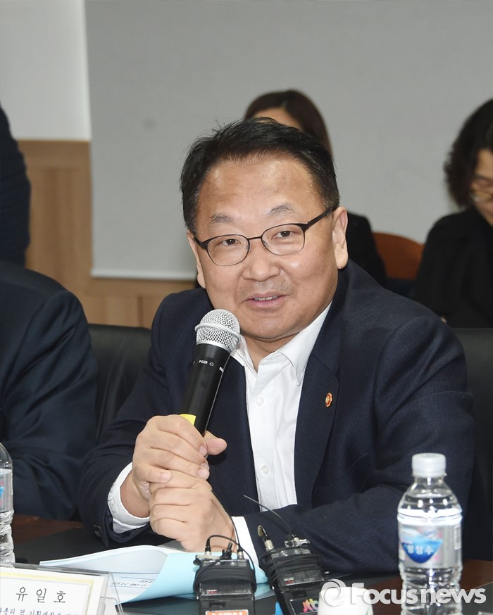 (공주=포커스뉴스) 유일호 부총리 겸 기획재정부 장관이 14일 오후 한-미 FTA 수혜기업인 충남 공주 소재 삼영기계(주)를 방문해 간담회를 갖고 있다. <사진제공=기획재정부>