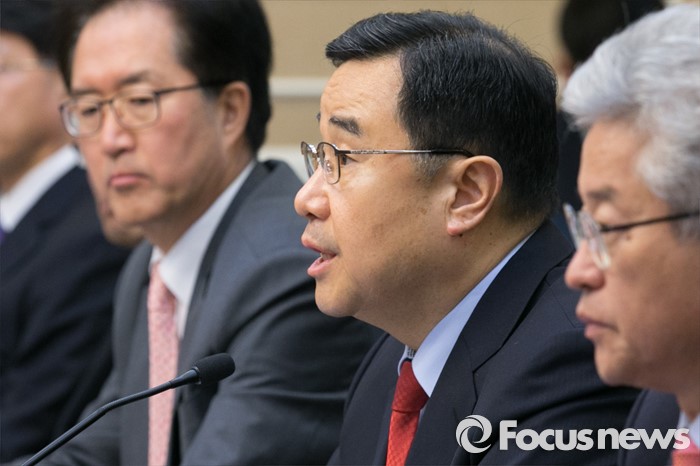 (서울=포커스뉴스) 김정훈(가운데) 새누리당 정책위의장이 15일 오전 서울 여의도 국회 귀빈식당에서 열린 안보상황 점검 긴급 당정협의에 참석해, 모두발언하고 있다.