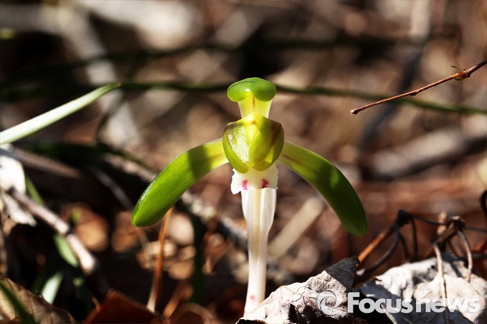 (완도=포커스뉴스) 꽃샘추위가 물러가고 봄기운이 다가온 15일 오전 전남 완도의 양지바른 야산에 자생하는 춘란이 꽃망울을 터트리고 있다. 꽃이 일찍 피기 때문에 보춘화라고도 하며,완도에서는 '꽁지발'이라고 부른다. <사진제공=이준택교수>