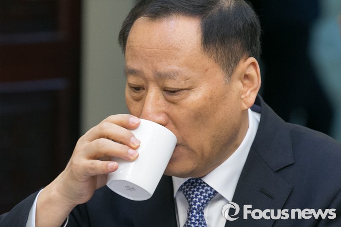 (서울=포커스뉴스) 최종일 국정원 3차장이 15일 오전 서울 여의도 국회 귀빈식당에서 열린 안보상황 점검 긴급 당정협의에 참석해,물을 마시고 있다.
