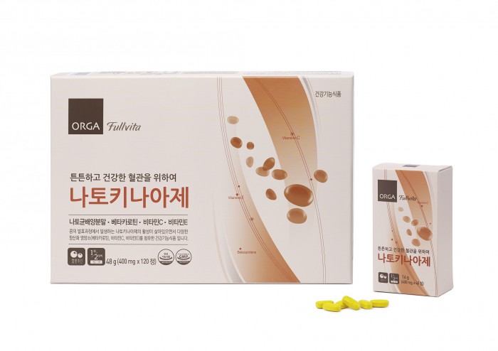 한편, 올가는 신제품 출시를 기념해 오는 20일까지 '풀비타 나토키나아제'를 구입하는 이들에겐 칠레 연안에서 잡은 단일 멸치 어종에서 추출한 고농축 오메가-3인 '풀비타 골든 엔쵸비 트리플 오메가'를 무료로 증정한다.4중 복합 건강기능식품 '풀비타 나토키나아제'.<사진제공=올가>