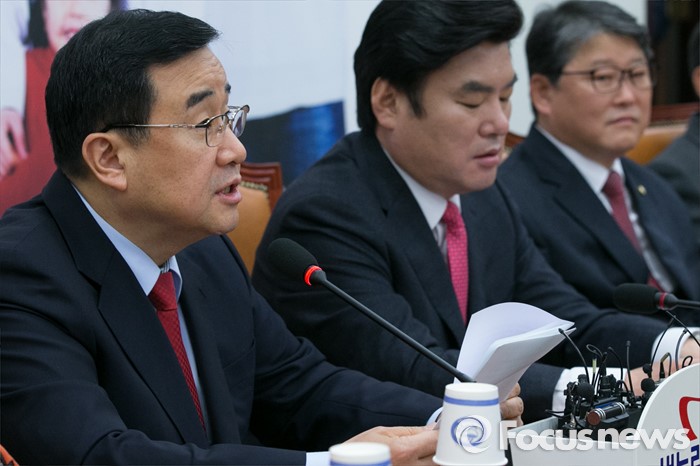 (서울=포커스뉴스) 김정훈(왼쪽) 새누리당 정책위의장이 15일 오전 서울 여의도 국회에서 열린 원내대책회의에 참석해, 발언하고 있다.