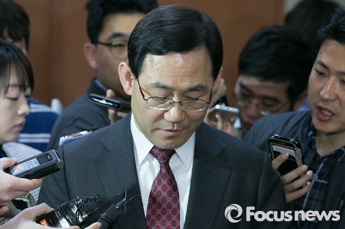 (서울=포커스뉴스) 20대 총선 공천에서 배제된 주호영 새누리당 의원이 15일 오전 서울 여의도 국회 정론관에서 기자회견을 마친 뒤, 기자들의 질문을 들으며 생각에 잠겨 있다.