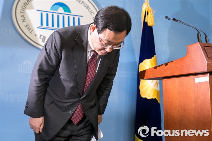 (서울=포커스뉴스) 20대 총선 공천에서 배제된 주호영 새누리당 의원이 15일 오전 서울 여의도 국회 정론관에서 기자회견을 마친 뒤, 인사하고 있다.
