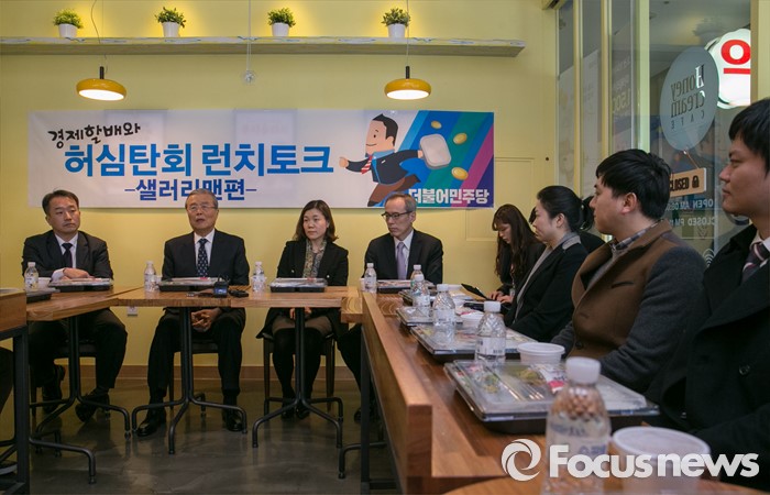 (서울=포커스뉴스) 김종인 더불어민주당 비대위 대표가 15일 오후 서울 여의도 한 카페에서 열린 경제할배와 허심탄회 런치토크 - 샐러리맨편 행사에 참석해 인사말을 하고 있다.