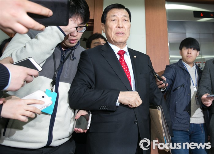 (서울=포커스뉴스) 황진하 새누리당 사무총장이 15일 오전 서울 여의도 당사에서 이한구 공천관리위원장과 비공개 논의를 위해 이동하며 취재진 질문을 받고 있다.