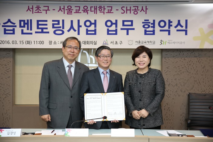 (서울=포커스뉴스) 서울시 SH공사는 취약계층 아동에게 무료 맞춤형 학습지도와 진로상담을 제공하기 위한 1:1학습 멘토링 업무협약을 서초구, 서울교육대학교와 체결했다고 15일 밝혔다.
