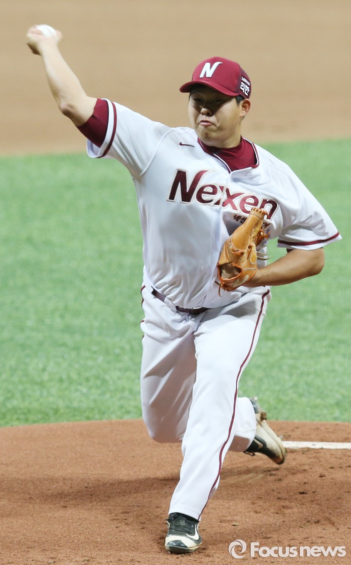 (서울=포커스뉴스) 15일 서울 고척스카이돔에서 열린 2016 프로야구 시범경기 SK-넥센 경기에서 넥센 선발투수 박주현이 힘차게 투구하고 있다.