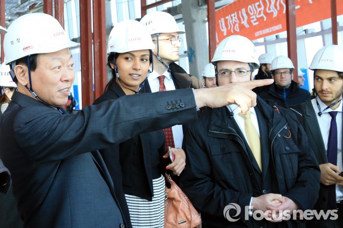 컬럼비아대 MBA 교수 및 재학생 40명은 15일 롯데월드타워를 방문해 건설 현장을 둘러보고, 롯데월드몰 아쿠아리움과 세계 최대 스크린 상영관인 슈퍼플렉스G를 견학했다. 견학을 마친 후 신동빈 회장은 컬럼비아대 MBA 재학생들을 대상으로 직접 롯데월드타워와 계열사들의 사업 현황을 설명했다.