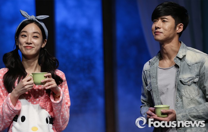 (서울=포커스뉴스) 15일 오후 서울 강남구 코엑스아트센터에서 열린 연극 '서툰사람들' 프레스콜에 참석한 배우 이주연(왼쪽)과 오종혁이 주요 장면을 시연하고 있다.