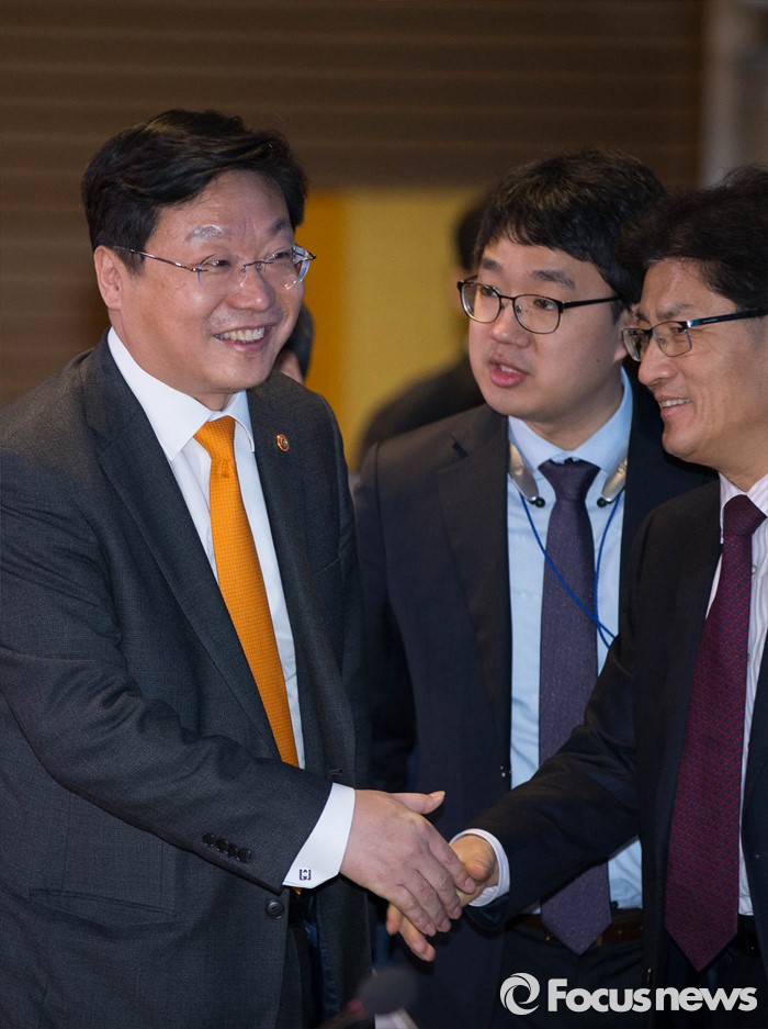 | △ 주형환 산업통상자원부 장관 '반갑습니다' |