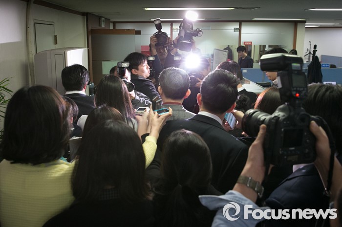 (서울=포커스뉴스) 이한구 새누리당 공천관리위원장이 15일 오후 서울 여의도 당사에서 20대 총선 3차 경선결과를 발표를 마친 뒤 회의실로 돌아가고 있다. 이날 새누리당 공천관리위원회는 서울 종로구 선거구에 오세훈 전 서울시장이 경선 후보로 확정됐다고 전했다.