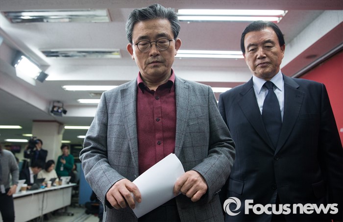(서울=포커스뉴스) 이한구 새누리당 공천관리위원장(왼쪽)이 15일 오후 서울 여의도 새누리당 당사에서 7차 공천결과 발표를 마친 후 브리핑룸을 빠져 나오고있다.