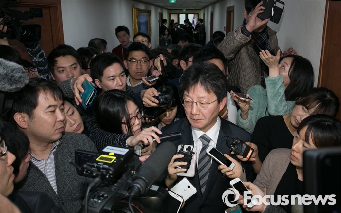 | △ 취재진 질문 답하는 유승민 |