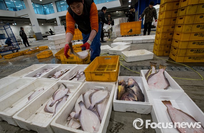 (서울=포커스뉴스) 16일 오전 서울 노량진 수산시장 현대화 건물 경매장에서 한 상인이 첫 경매 준비를 하고 있다. 이날 경매를 시작으로 현대화 건물에서의 개장이 이뤄졌지만, 절반 넘는 상인들이 좁아진 상가 공간과 비싸진 임대료를 주장하며 옛 건물에 남은 채 이전을 거부 중인 상황이다.