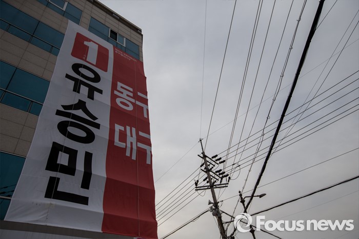 (대구=포커스뉴스) 새누리당이 유승민(대구 동구을) 의원에 대한 공천 배제안을 놓고 고민하고 있는 16일 오전 대구 동구 한 건물에 유 의원의 선거사무소가 마련되어 있다.