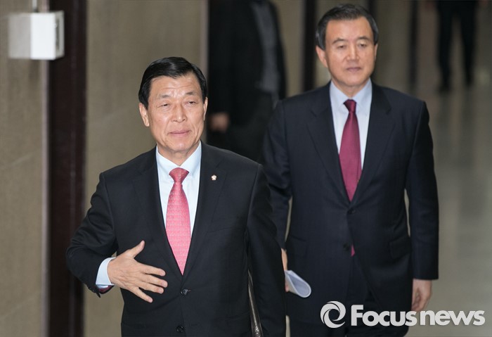 (서울=포커스뉴스) 황진하(왼쪽) 새누리당 사무총장과 홍문표 제1사무부총장이 16일 오전 서울 여의도 국회에서 열린 비공개 최고위원회의에 참석하고 있다.