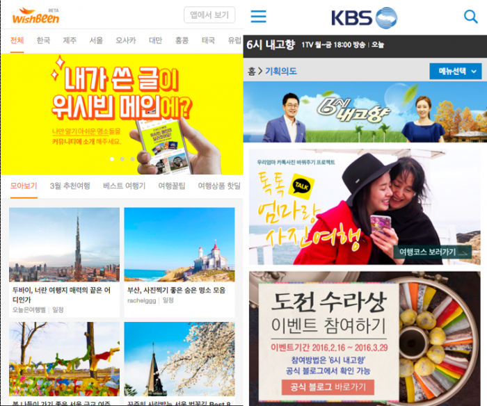 (서울=포커스뉴스) 옐로모바일(대표이사 사장 이상혁)의 여행 정보 공유 서비스 위시빈은 KBS 교양문화국 '6시 내고향'팀과 여행 콘텐츠 제휴 맺었다고 16일 밝혔다.