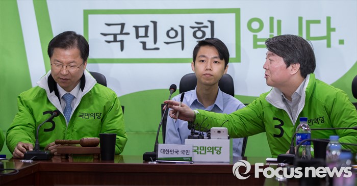 (서울=포커스뉴스) 안철수, 천정배 국민의당 상임공동대표가 16일 오전 서울 여의도 의원회관에서 국민대표와 함께 최고위원회의를 열고 있다.