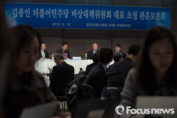(서울=포커스뉴스) 김종인 비대위 대표가 16일 오전 서울 중구 한국프레스센터 국제회의장에서 열린 '김종인 더불어민주당 비상대책위원회 대표 초청 관훈토론회'에 참석해 모두발언을 하고 있다.