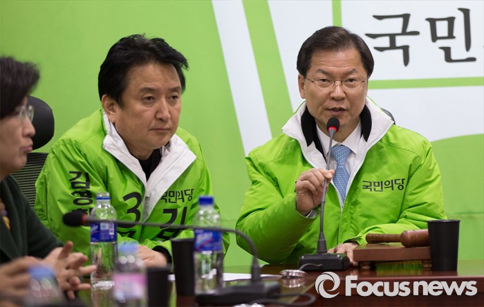 (서울=포커스뉴스) 천정배 국민의당 상임공동대표(오른쪽)가 16일 오전 서울 여의도 의원회관에서 열린 최고위원회의에서 모두발언을 하고 있다.