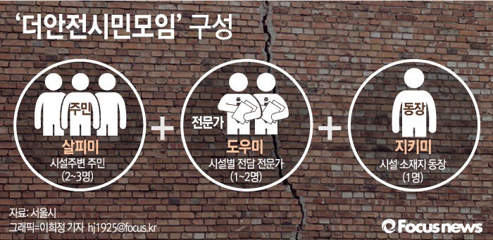 (서울=포커스뉴스) 서울시는 재난위험시설에 대한 안전관리를 강화하기 위해 민‧관이 함께하는 '더안전시민모임'을 구성한다고 16일 밝혔다. '더안전시민모임'은 재난위험시설에 시설주변 주민 2~3명이 참여하는 '살피미', 시설 전담 안전 전문가 1~2명이 맡게 될 '도우미', 시설 소재지 동장인 '지키미'로 구성된다.