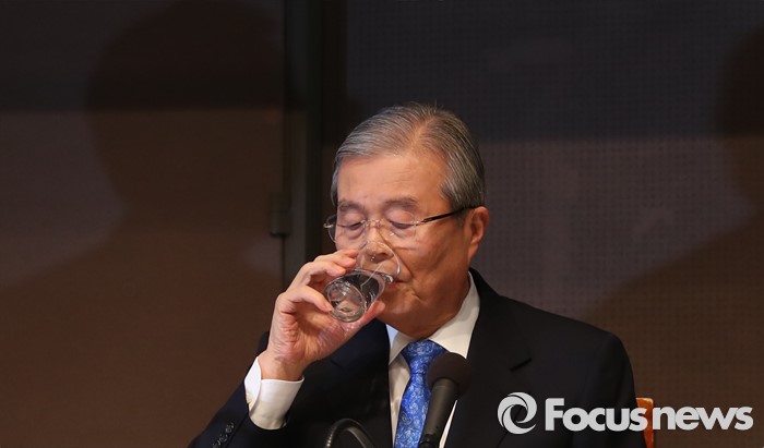 (서울=포커스뉴스) 김종인 비대위 대표가 16일 오전 서울 중구 한국프레스센터 국제회의장에서 열린 '김종인 더불어민주당 비상대책위원회 대표 초청 관훈토론회'에 참석, 물을 마시고 있다.