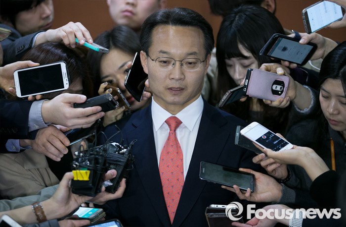 | △ 취재진 앞에 선 조해진 |