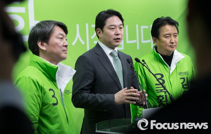 (서울=포커스뉴스) 더불어민주당을 탈당한 정호준 의원(가운데)이 16일 오후 서울 마포구 국민의당 당사에서 국민의당 입당 소감을 밝히고 있다.