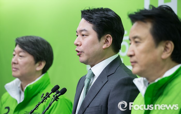 (서울=포커스뉴스) 더불어민주당을 탈당한 정호준 의원(가운데)이 16일 오후 서울 마포구 국민의당 당사에서 국민의당 입당 소감을 밝히고 있다.
