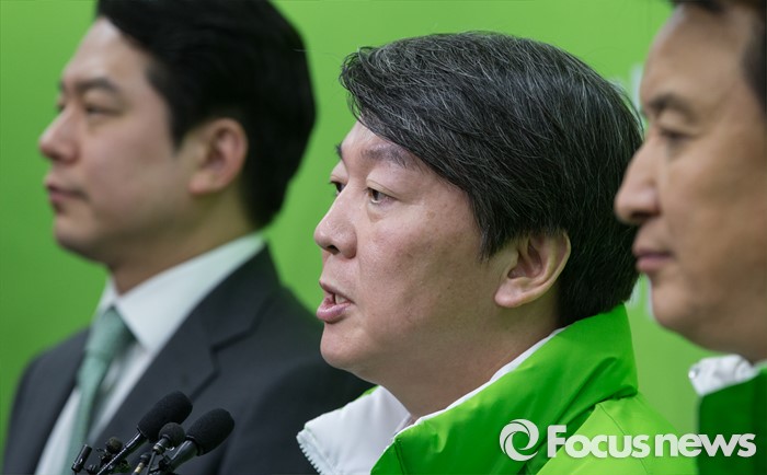 (서울=포커스뉴스) 안철수 국민의당 상임공동대표(가운데)가 16일 오전 서울 마포구 국민의당 당사에서 더불어민주당을 탈당한 정호준 의원(왼쪽)의 입당 소식을 알리고 있다.