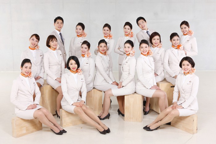 제주항공은 객실승무원들의 만족도와 소속감을 높이기 위해 2009년부터 매년 객실승무원을 사내모델로 선발했다.제주항공 8기 사내모델들. <사진제공=제주항공>