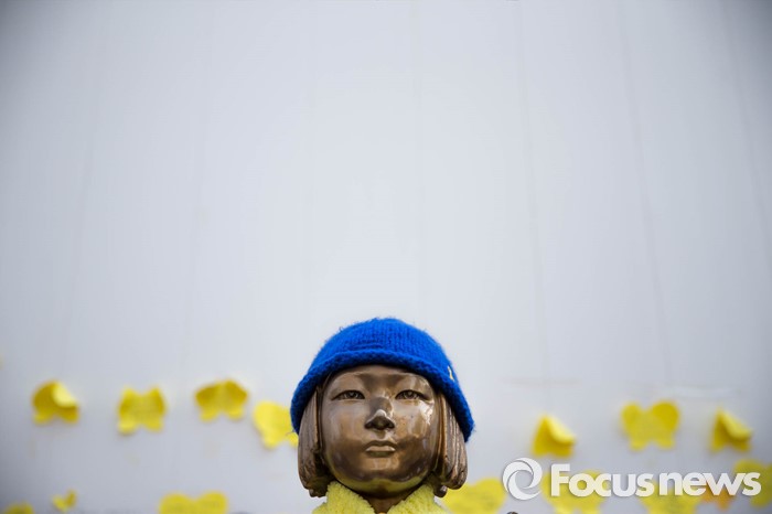 (서울=포커스뉴스) 16일 오후 서울 종로구 옛 일본 대사관 앞에서 '일본군 위안부 문제해결을 위한 1222차 정기 수요집회'가 열리고 있다.
