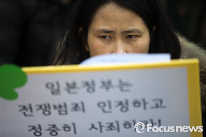 (서울=포커스뉴스) 16일 오후 서울 종로구 옛 일본 대사관 앞에서 '일본군 위안부 문제해결을 위한 1222차 정기 수요집회'가 열리고 있다.