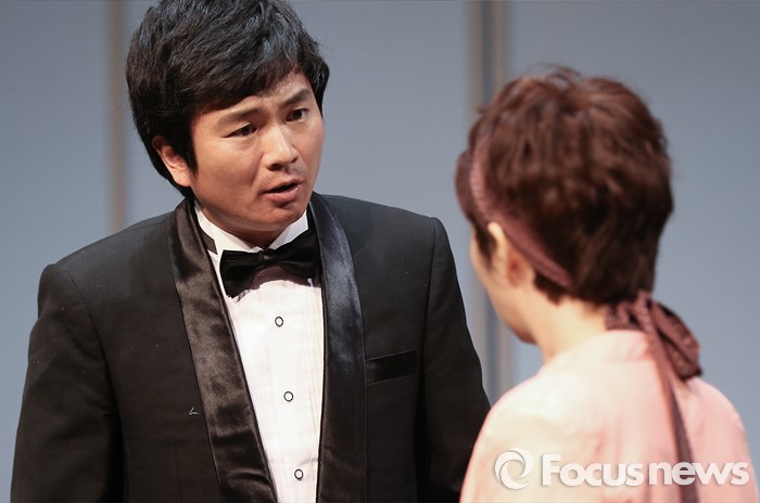 (서울=포커스뉴스) 16일 오후 서울 종로구 미마지아트센터 눈빛극장에서 열린 연극 '두 코리아의 통일' 프레스콜에 참석한 배우 정나진이 주요장면을 시연하고 있다.