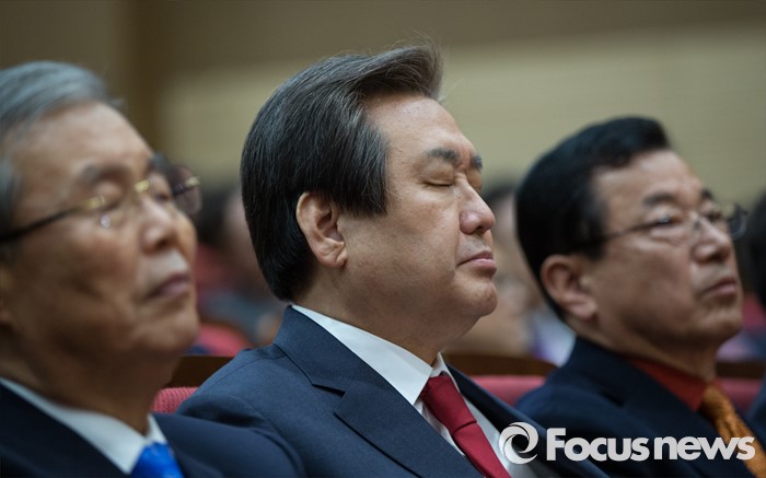 (서울=포커스뉴스) 김무성 새누리당 대표(가운데)와 김종인 더불어민주당 대표(왼쪽)가 16일 오후 서울 여의도 국회 의원회관에서 열린 '자영업자 정책연대 및 생존권 사수 출정식'에 참석하고 있다.
