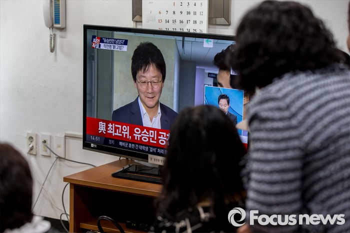 (대구=포커스뉴스) 새누리당이 유승민(대구 동구을) 의원에 대한 공천 배제안을 놓고 고민하고 있는 16일 오후 대구 동구 유 의원 선거사무소에 모인 지지자들이 뉴스를 시청 하고 있다.